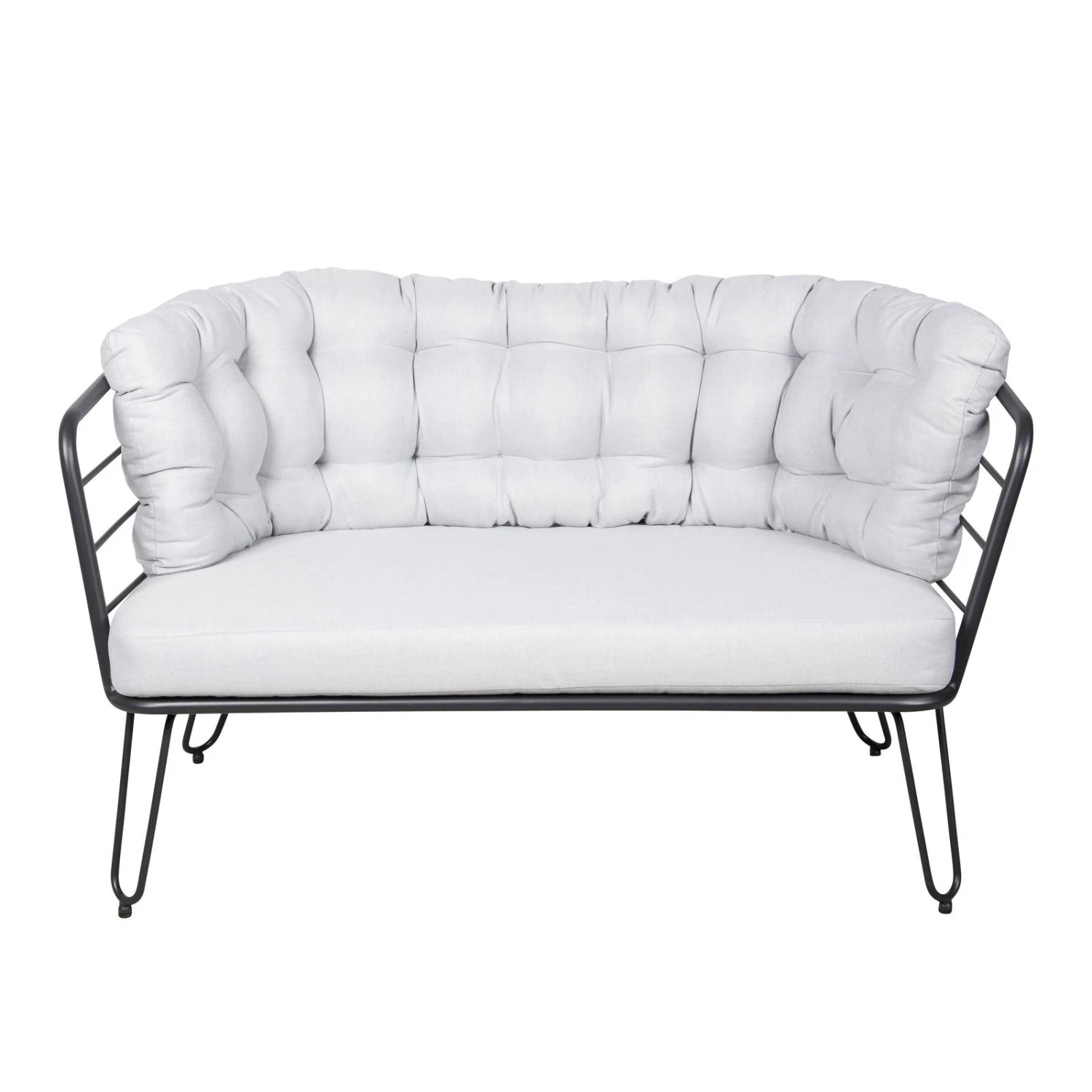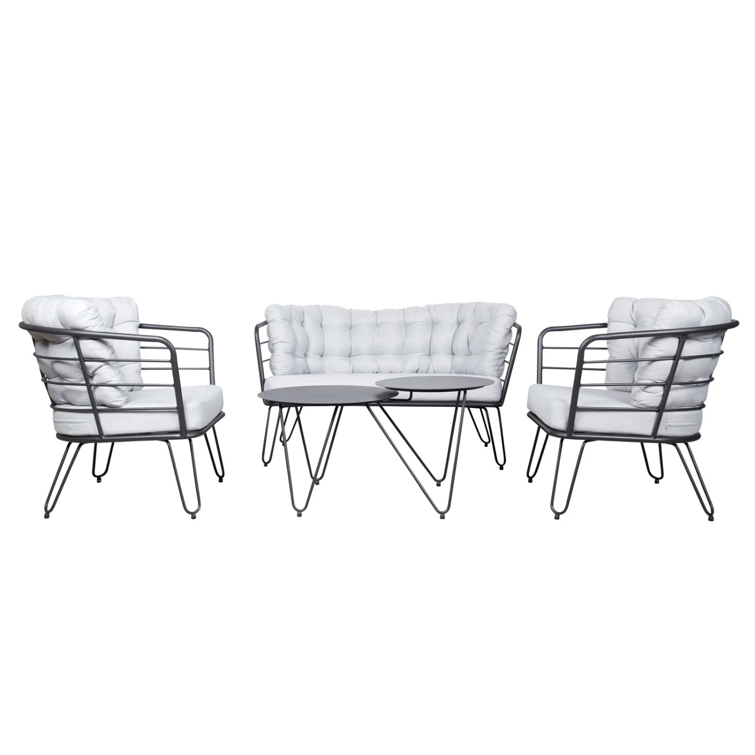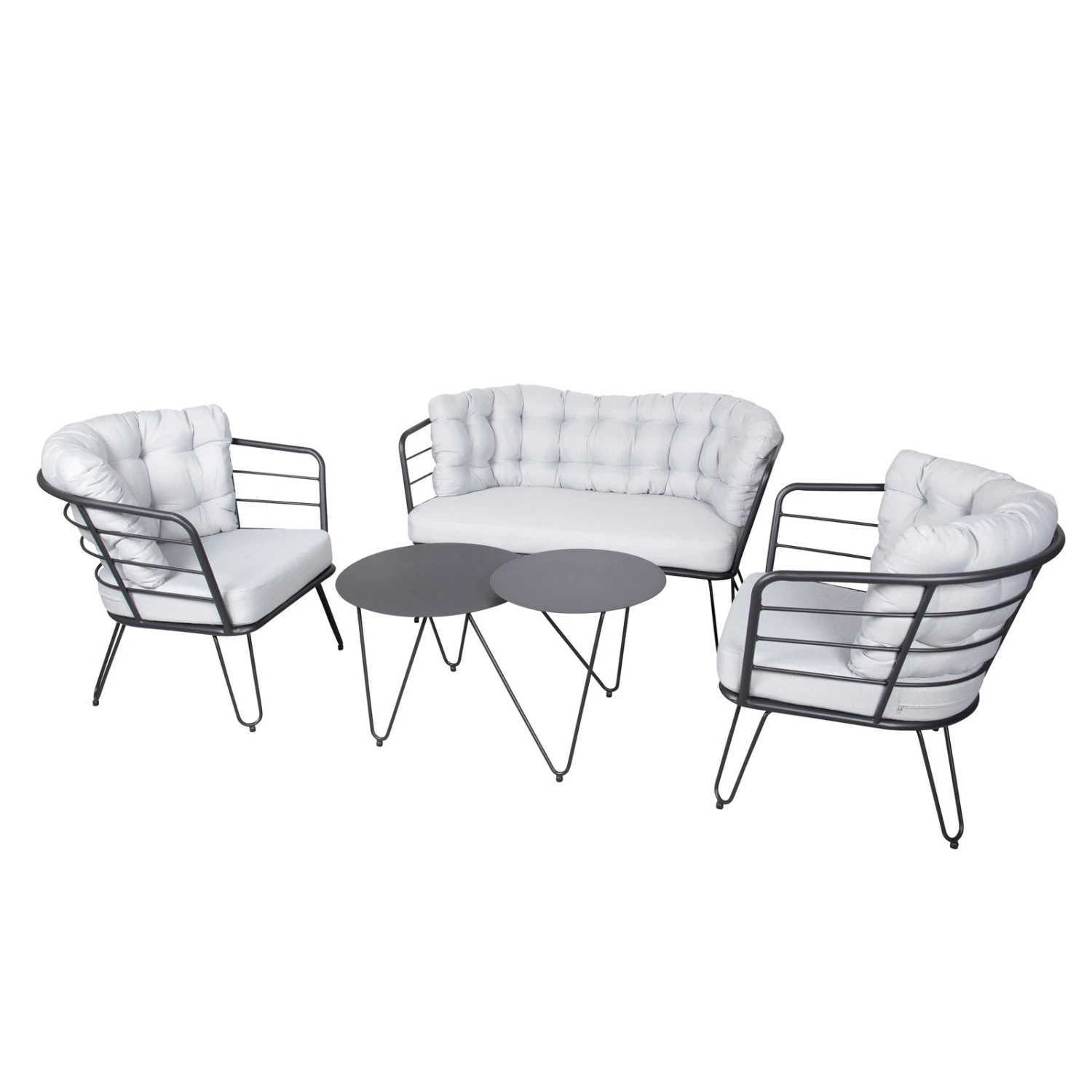 Die Alu-Loungegruppe ‘Bella’ hilft Ihnen, Ihre Sitz- und Dining-Landschaft im Outdoorbereich mit maximalem Komfort zu gestalten. Diese Loungegruppe überzeugt durch stabiles und leichtes Gestell aus Aluminium in der Farbe Schwarz und weich gepolsterte Auflagen in Grau, die im Lieferumfang bereits inklusive sind.