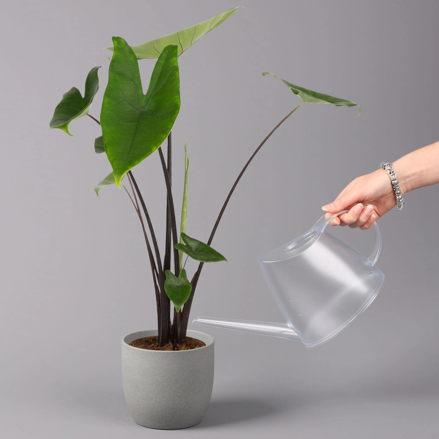 Während der warmen Sommermonate darf die Alokasie gerne an einen halbschattigen, geschützten Standort auf Balkon oder Terrasse umziehen. Achten Sie darauf, die Pflanze schrittweise an die neue Umgebung zu gewöhnen, um Verbrennungen zu vermeiden. Wichtig ist außerdem ein windgeschützter Platz, da die großen Blätter bei starkem Wind schnell Schaden nehmen können.