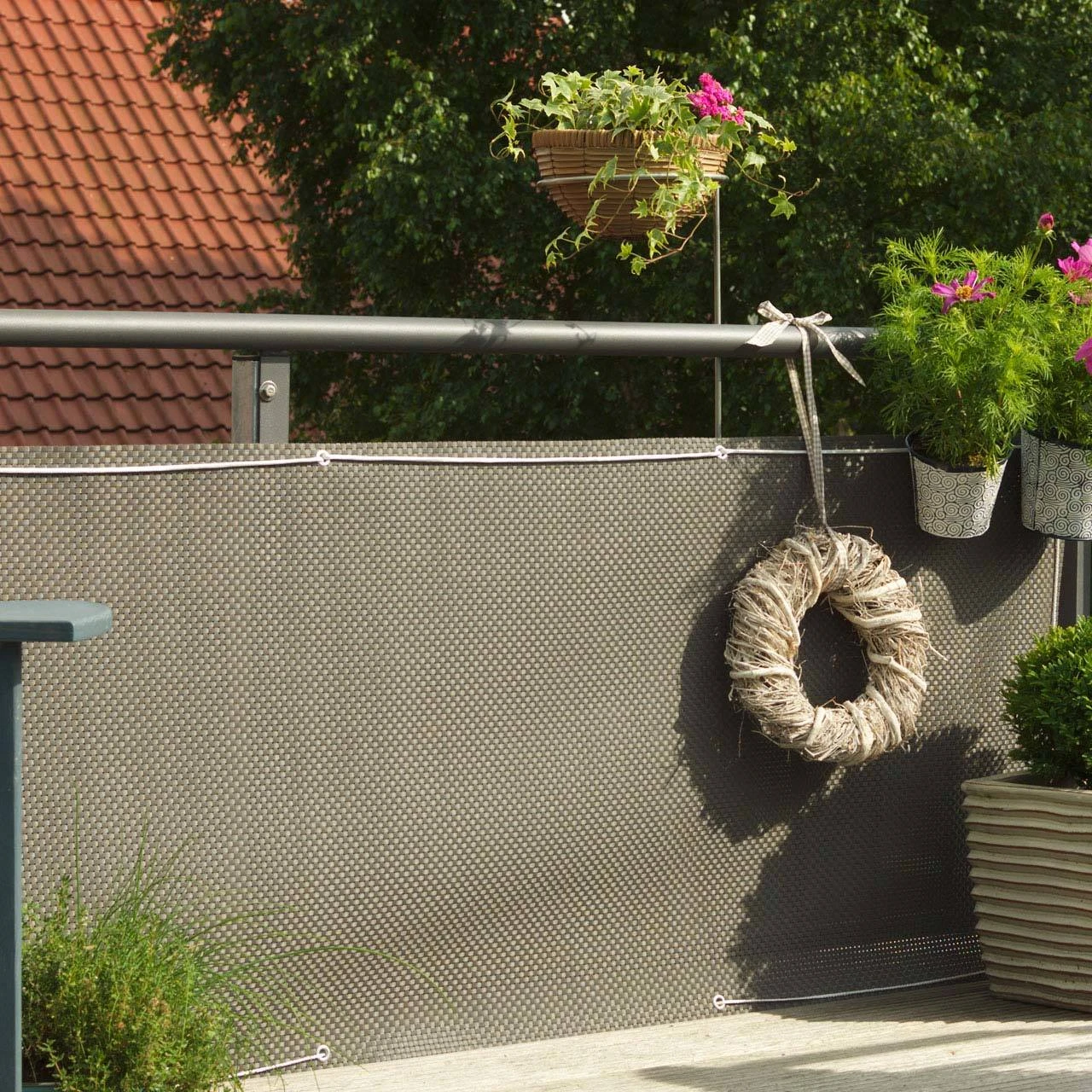 Schaffen Sie sich ein gemütliches Ambiente und eine dekorative Sitzecke mit dem Balkonbespannung. Sie schützt Sie und Ihre Familie sowohl vor Witterungseinflüssen als auch vor neugierigen Blicken der Nachbarn. Durch handliche Metallösen können Sie die Bespannung ganz einfach am Balkongitter anbringen. Achten Sie darauf, dass Sie sie etwa 10 cm über dem Boden anbringen, um Staunässe zu vermeiden und so möglichst lange Freude daran zu haben.
