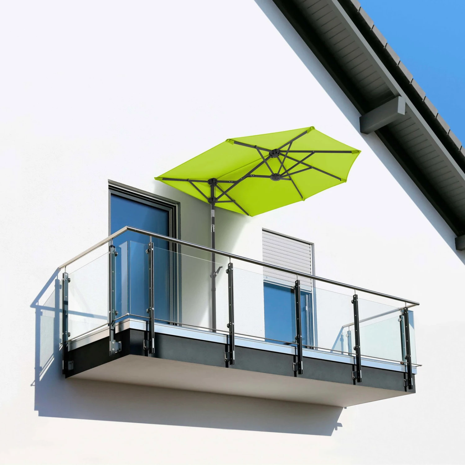Der Balkonschirm Salerno Mezza sorgt für ein schattiges Plätzchen an einem glühend heißen Sommertag. Spannen Sie den Schirm auf und genießen Sie die Abkühlung. Um den Balkonschirm an den Sonnenstand anzupassen, nutzen Sie den integrierten Knickmechanismus. Der Schirm ist mit Hilfe einer Kurbel zu öffnen. Die Bespannung ist abnehmbar. Für die Reinigung empfehlen wir die Handwäsche.