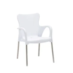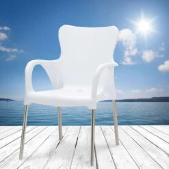 Der Stapelsessel Maui ist ein echter Hingucker, der durch die extravagant geformte Sitzschale nicht nur sehr bequem, sondern auch wetterfest ist. Mit seiner unempfindlichen, seidenmatt schimmernden Kunststoffoberfläche in stylischem Weiß und dem poliertem Aluminiumgestell überzeugt der Stapelsessel Maui sowohl auf Balkon und Terrasse wie auch im Innenbereich und in Restaurants oder Cafés.