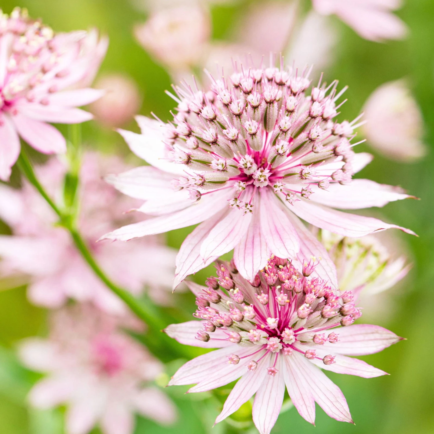 Die Sterndolde, Astrantia major ‘Roma’, in Bio-Qualität ist eine auffällig schöne Staude, mit festen Stielen auf denen ab Anfang Juni rosa bis altrosa Blütenköpfchen in kräftiger Farbe erscheinen. Die rosig erscheinenden strahlenförmigen Hüllblätter verändern ihre Farbe mit der Zeit in ein schimmerndes, grünlich überhauchtes Silber.