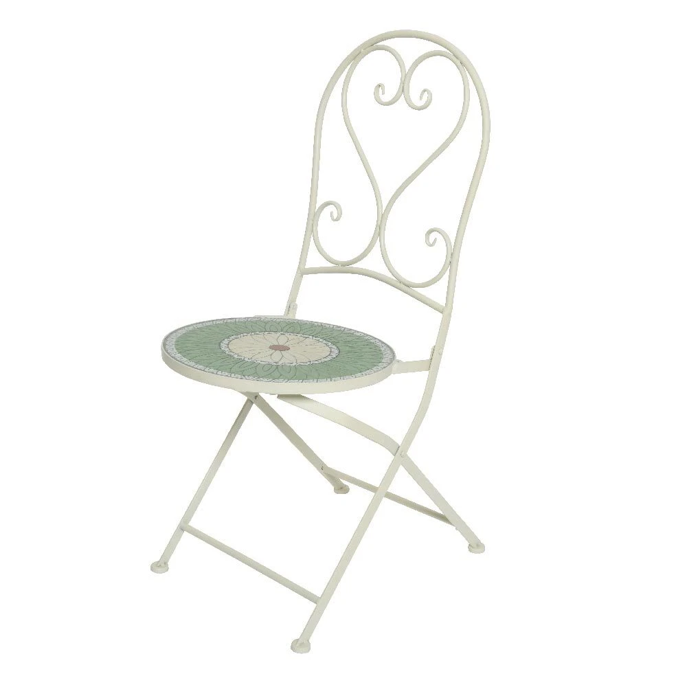 Dieser dekorative Klappstuhl überzeugt mit hohem Sitzkomfort und lässt mit einem Mal ein sonnig-mediterranes Ambiente auf Ihrer Terrasse, Ihrem Balkon oder zum Beispiel im Wintergarten entstehen. Der Bistro-Klappstuhl ‘Vigo’ aus robustem Eisen ist aufwendig mit geschmackvollem Blumenmosaik dekoriert und ein besonderes Schmuckstück unter Ihren Sitzmöbeln.