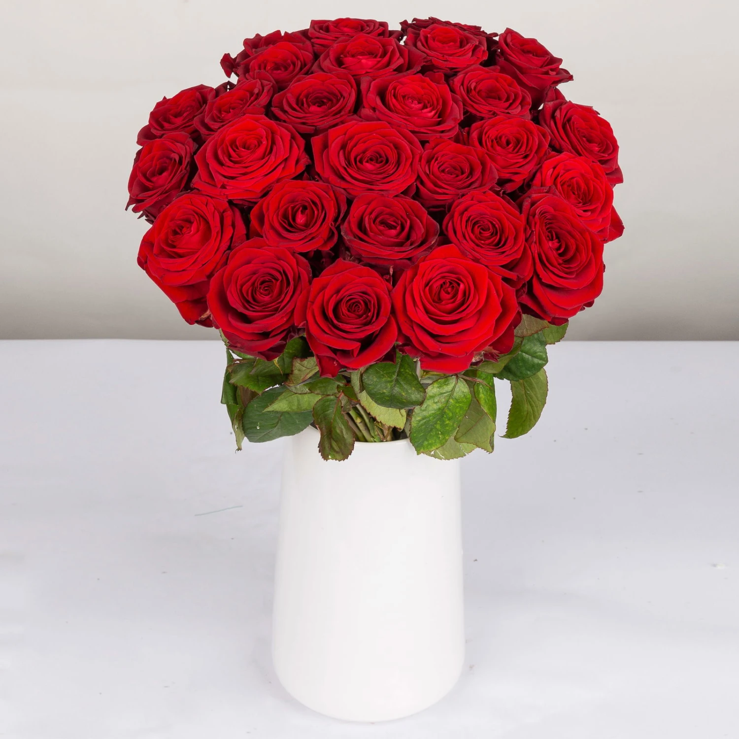 Unsere exklusiven Edelrosen ‚Red Naomi‘ in samtigem Rot mit herrlichem Duft stehen sinnbildlich für die ganz große, immerwährende Liebe – ein Blumengruß, der Herzen zum Schmelzen bringt!