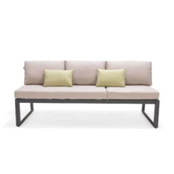 Genießen Sie einen Blick ins Grüne und profitieren Sie dank der Dining-Bank ‘Jimmy’ von ausgezeichnetem Sitzkomfort. Der Dreisitzer im angesagten Industrial Style überzeugt mit einem höhenverstellbaren Rückenteil und ist in der Mitte bis zu einem Gewicht von 160 Kilogramm belastbar. Die witterungsbeständigen Auflagen mit Bezug aus Olefin sind im Lieferumfang inklusive.