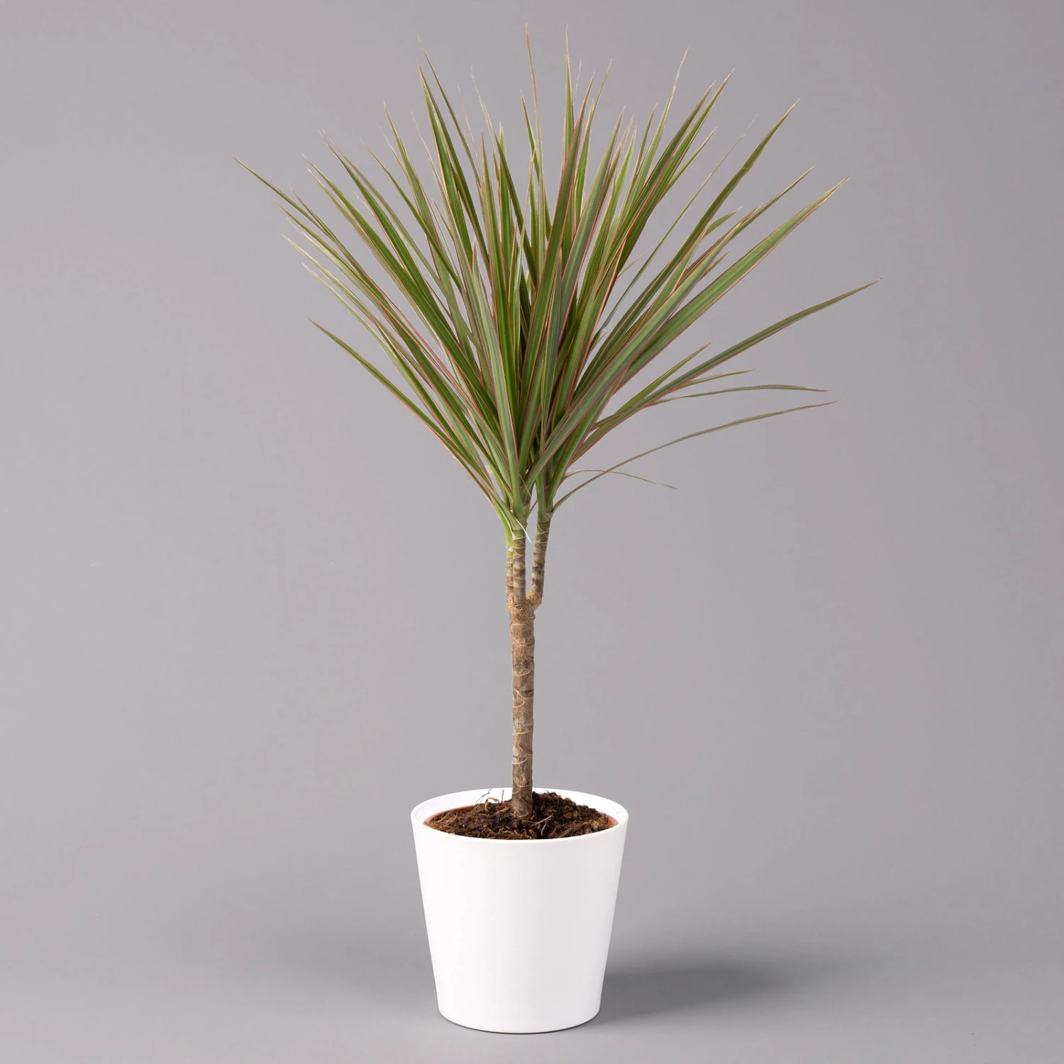 Er ist exotisch, auffällig gemustert und üppig geformt: Der Drachenbaum, auch Dracaena marginata ‘Bicolor’ genannt. Diese Zimmerpflanze lässt sich an nahezu jeden Standort in Ihrer Wohnung oder im Büro aufstellen und schafft dadurch ein einzigartiges Ambiente. Nicht nur optisch wertet der Drachenbaum den Innenbereich auf, sondern filtert auch Schadstoffe aus der Luft. Fühlen Sie sich wie in der freien Natur und genießen Sie herrlich frische Luft! Die roten Streifen der schmalen Blätter sind zudem ein wahrer Hingucker. Nicht umsonst verdient diese Pflanze ihren Namen, denn das Muster erinnert an ein beeindruckendes Fabelwesen der chinesischen Kultur. Um diese Struktur zu erhalten, sollten Sie regelmäßig ein wenig Grünpflanzendünger zum Substrat geben. Tipp: Verfärben sich die Blätter und weisen gelbe Flecken auf, sollten Sie die Wasserzufuhr etwas reduzieren.