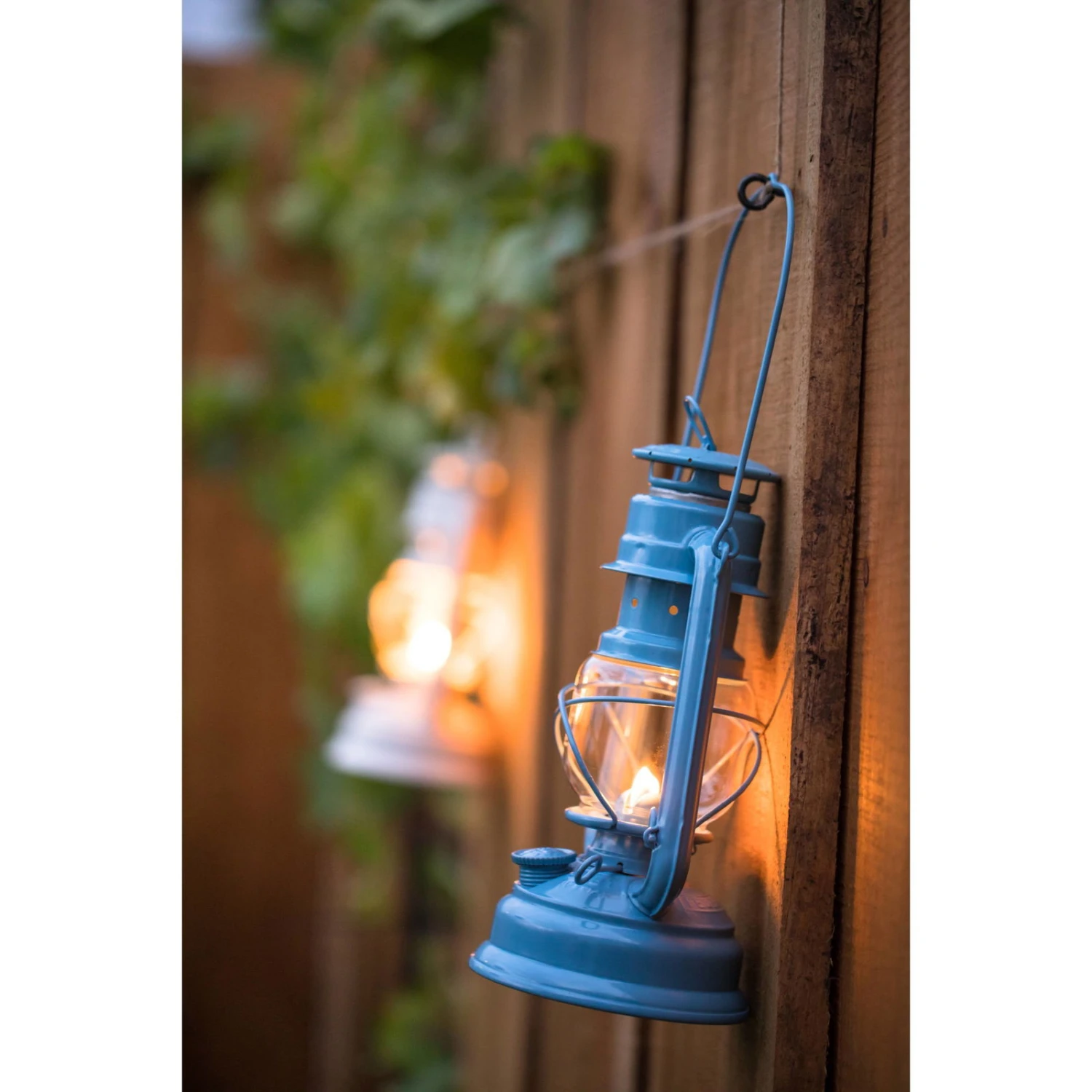 Diese primäre Lichtquelle trotzt Regen, Sturm und Schnee. Die Sturmlaterne ‘Baby Special 267’ von Feuerhand in zartem Pastellblau eignet sich perfekt für den Außenbereich als Terrassen-, Weg- oder auch Partyleuchte und überzeugt mit einer Brenndauer von etwa 20 Stunden. Es bleibt nur noch, den Tank mit Lampenöl oder Petroleum zu befüllen und die Flamme anzuzünden.