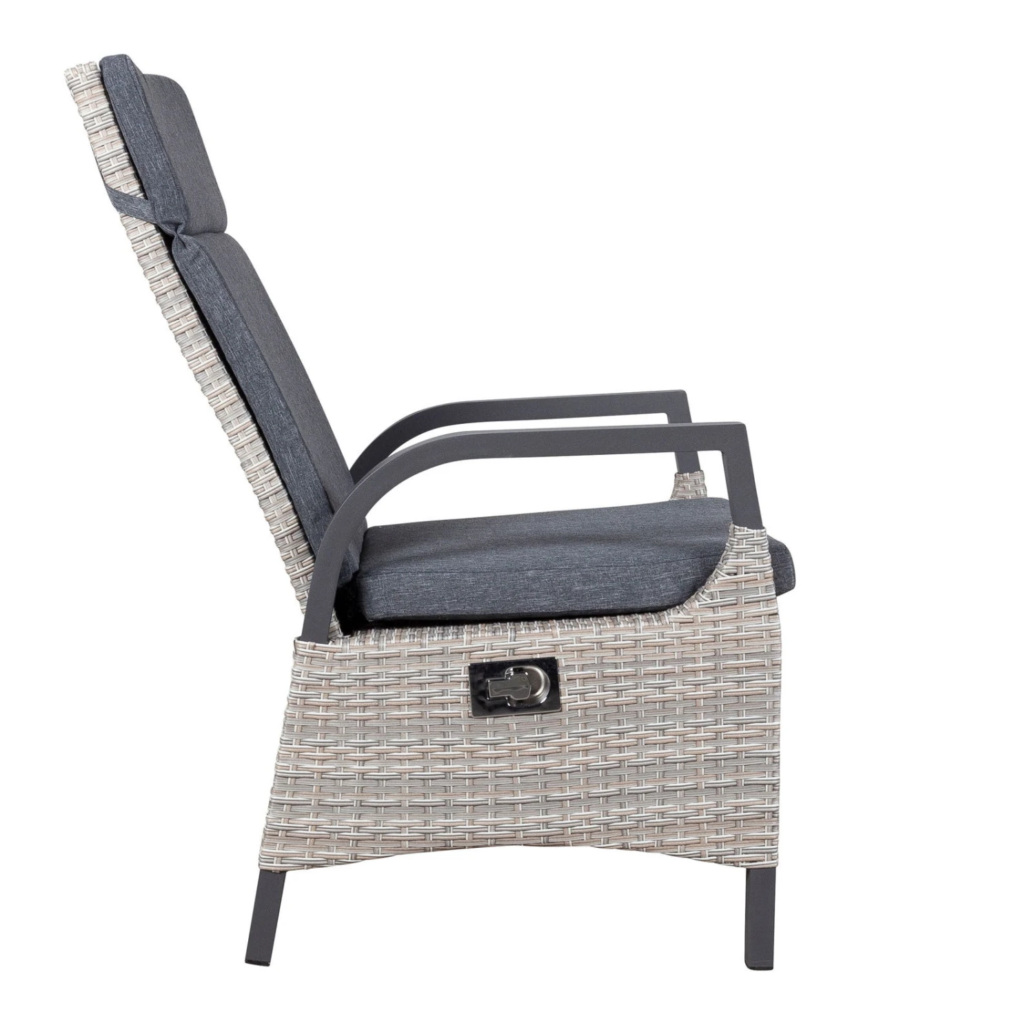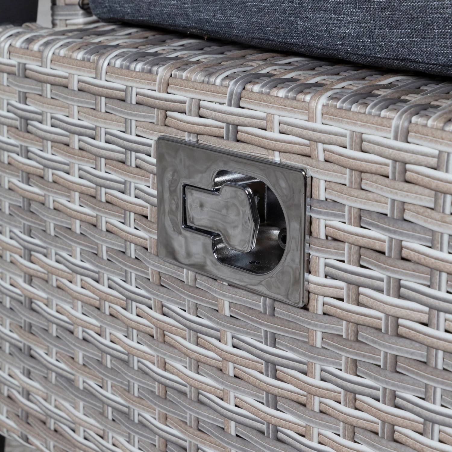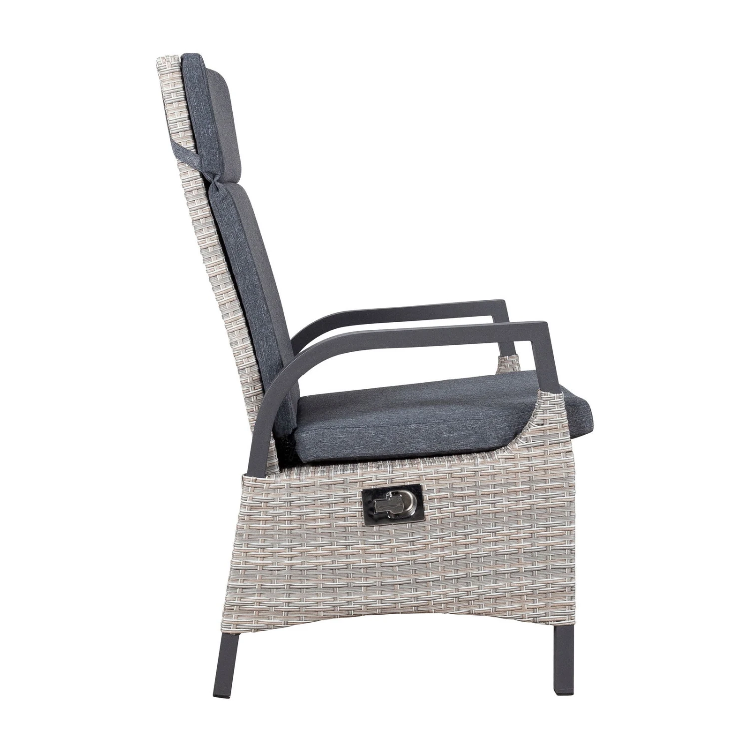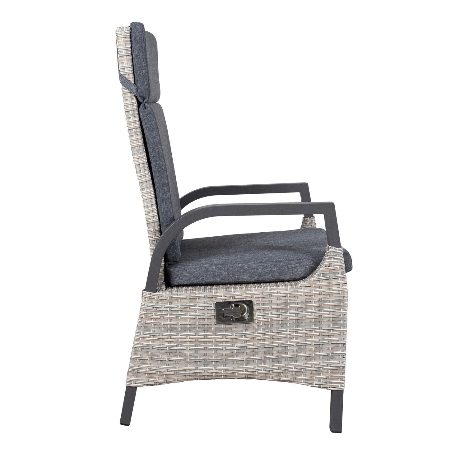 Dieser stilvolle Geflechtsessel aus Kunstrattan verleiht Ihrer Lounge-Landschaft eine zeitlos-rustikale Note. Der hochwertige Sessel ‘Westerland’ aus Kunstrattangeflecht von Kölle ist Ihre komfortable, winterfeste und pflegeleichte Sitzgelegenheit auf der Terrasse oder dem Balkon, im Wintergarten oder auch im Wohnzimmer. Um es sich noch bequemer zu machen, können Sie die Rückenlehne stufenlos verstellen.