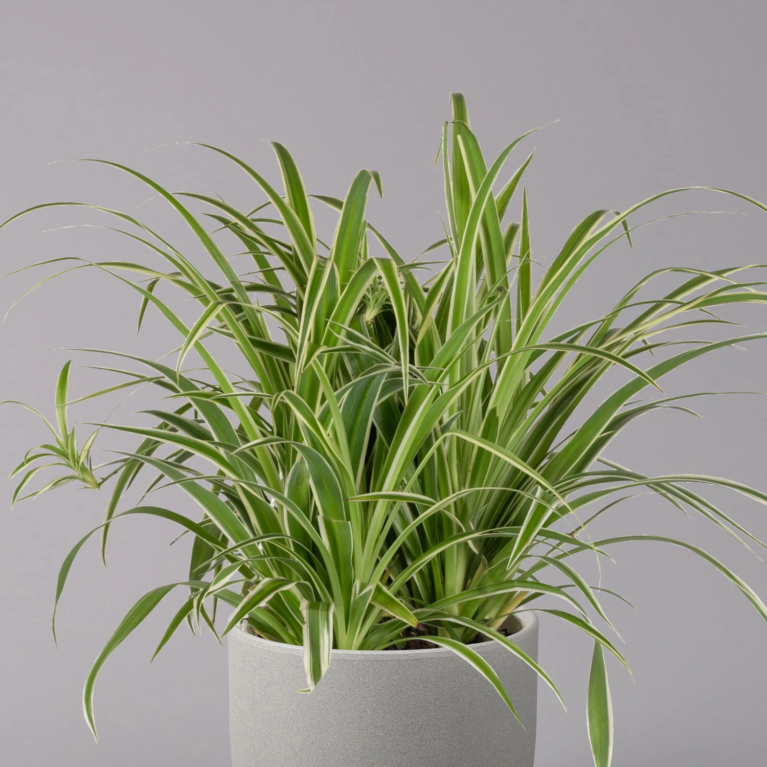 Die Grünlilie (Chlorophytum comosum) ist ein Klassiker unter den Zimmerpflanzen und eignet sich für jeden Haushalt, da sie besonders pflegeleicht und robust ist. Charakteristisch sind die lanzettlichen, langen Blätter, die je nach Sorte unterschiedlich stark ausgeprägte Färbungen der Blattränder besitzen. Die Pflanze wächst buschig überhängend und rosettenartig, wobei sie Höhen von 30 bis 40 cm erreicht.