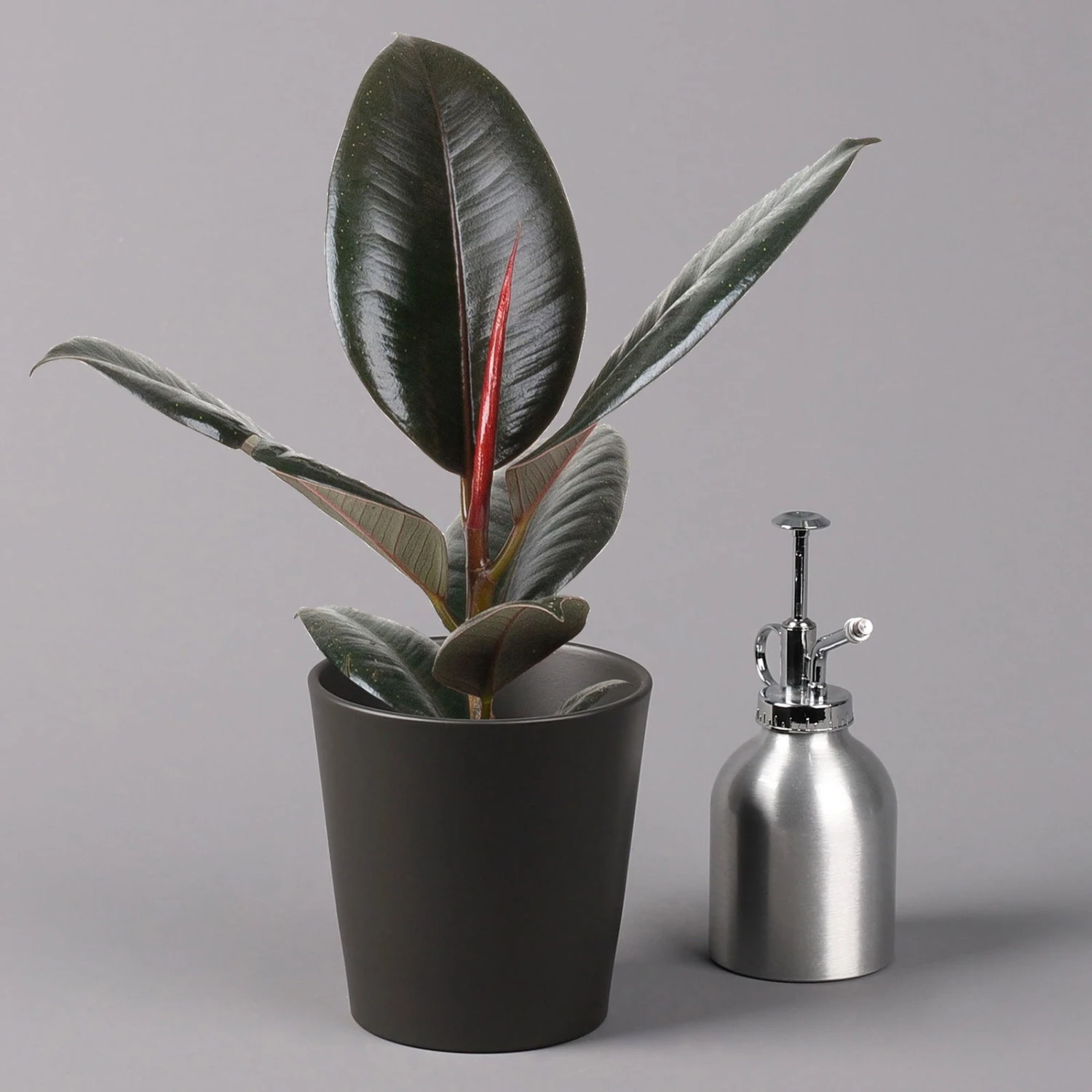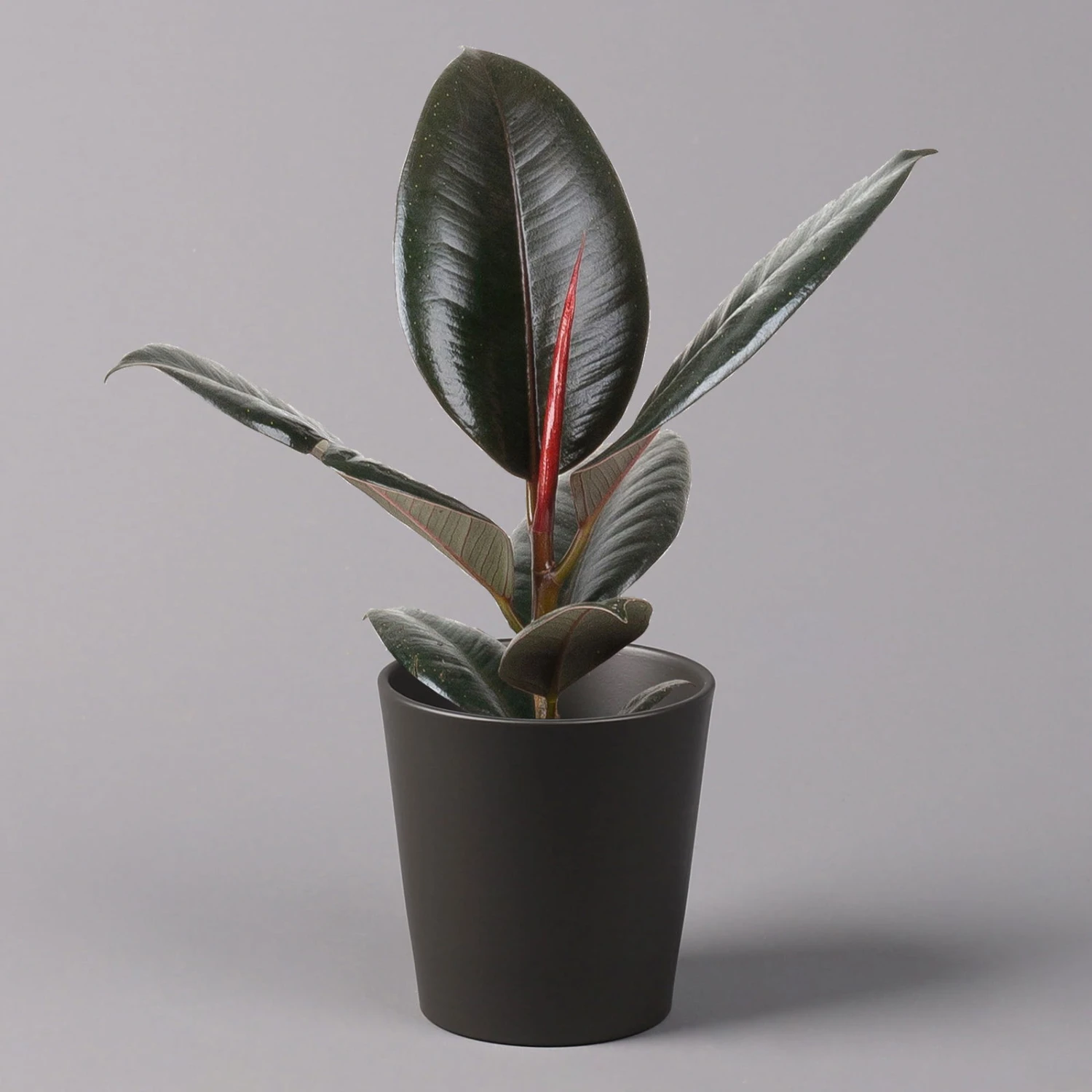 Der Ficus elastica ‘Robusta’ begeistert mit großen, ledrigen Blättern und gilt als besonders widerstandsfähig. Der anspruchslose Gummibaum, so der deutsche Name dieser Trendpflanze, lässt sich mit gleichem Erfolg zur Begrünung von Büros, Arztpraxen oder Wohnräumen einsetzen. Ein Ficus ist eine richtige Wohlfühlpflanze, da dieses Tropengewächs der Luft unterschiedliche Schadstoffe entzieht und somit für ein besseres Raumklima sorgt. An den Standort stellt der Ficus elastica ‘Robusta’ keine allzu hohen Ansprüche, denn der Gummibaum gibt sich sowohl mit hellen als auch mit halbschattigen Lagen durchaus zufrieden. Problematisch können neben einem Überfluss an direkter Sonne noch Zugluft und Staunässe sein. Auf Wunsch dürfen Sie Ihren Ficus gerne in der warmen Jahreszeit an einem windgeschützten Standort im Freien pflegen. Bitte beachten Sie, dass der Milchsaft des Gummibaumes giftig ist.