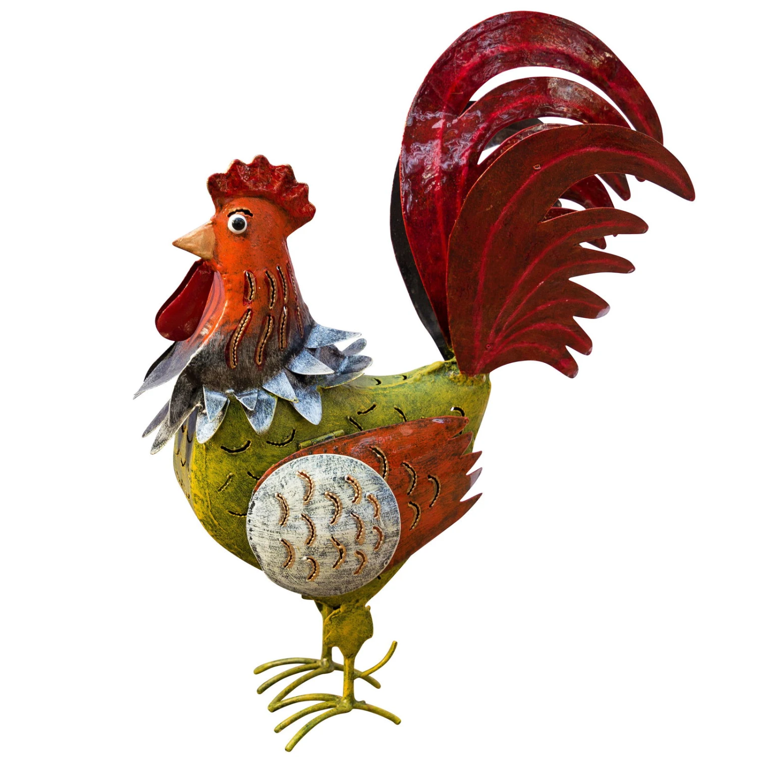 Der kleine Hahn Erich ist ein echter Hingucker auch in Ihrem Garten. Von Hand geformt und bemalt, ist jede einzelne Gartenfigur ein Unikat, das alle Blicke auf sich zieht. Da er aus robusten Stahlblechen und einer hochwertigen Grundierung ist, können Sie ihn Sommer wie Winter bei jedem Wetter im Freien stehen lassen. Die Schweißnähte werden entgratet, verputzt und gereinigt. Auf der fertigen Figur sind diese “Narben” des Produktionsprozesses komplett verschwunden. Anschließend nimmt der Hahn Erich ein Bad in der Grundierung, die gut trocknen muss bevor künstlerisch versierte Mitarbeiter viele, kleine Details auf die Figur malen. Mit grünen, roten sowie orangenen Lackierungen erwacht Ihr Hahn Erich förmlich zum Leben. Besonders wohl fühlt er sich zwischen Ihren Lieblingsblumen.
