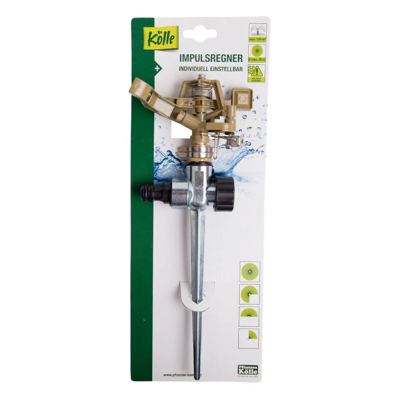 Verwenden Sie den Kölle Impulsregner zum Beregnen von großen und kleinen kreisrunden Flächen mit einer Maximalgröße von 530 m². Der Impulsregner ist aus Metall gefertigt und kann über zwei Stellringe individuell eingestellt werden. Kombinieren Sie dieses Zubehörteil für Ihre Gartenbewässerung mit allen marktüblichen Bewässerungssystemen.
