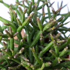 Falls Sie nach einer exotischen Begrünung für Ihr Zuhause suchen, dann bietet sich unser Korallenkaktus-Set (Rhipsalis) in formschönen Dekotöpfen mit dem abstrakten Wuchs geradezu an. Diese kaktusartigen Zimmerpflanzen sind ausgesprochen pflegeleicht und zeigen eine hohe Toleranz in Hinblick auf die Wassergaben. Lassen Sie das Substrat gründlich antrocknen, bevor Sie den Korallenkaktus wieder gießen. Eine gute Drainage ist für die Pflanzengesundheit entscheidend, daher eignet sich Kakteenerde für die Pflege der Pflanzen am besten. Die Pflanzen brauchen das ganze Jahr über konstante Wärme, sodass die Raumtemperaturen nicht unter 20 Grad Celsius fallen dürfen. In der kalten Jahreszeit sollte zusätzlich auf einen Standort abseits von trockener Heizungsluft geachtet werden.