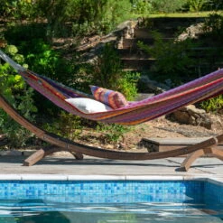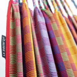 Wer das GefĂŒhl der Schwerelosigkeit mag und gerne trĂ€umt, wird die Doppel HĂ€ngematte ‘Modesta’ lieben. Sie besteht aus bunter Bio-Baumwolle, die lange Fasern hat und sehr reiĂfest ist. Mit den groĂzĂŒgigen MaĂen 350 x 160 cm ist die HĂ€ngematte ideal fĂŒr zwei Personen. Die maximale Belastbarkeit betrĂ€gt 160 kg.