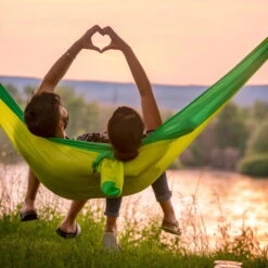 In einem schicken Grün erstrahl die Doppel-Reisehängematte Colibri 3.0. Der bequeme, hautverträglich Nylon Stoff ist sehr pflegeleicht, langlebig und robuStück Bis zu 180 Kilogramm hält diese Reisehängematte aus – Perfekt geeignet also, um mit Ihrem Partner an jedem Ort der Welt so richtig abhängen zu können. Die Verbindung aus extra breiten, baumfreundlichen Gurten und der patentierten SmartHook Befestigung macht den schnellen und einfachen Aufbau möglich. Die Gurte schonen dank ihrer Breite die Rinde der Bäume. Zum Reinigen der Doppel-Reisehängematte Colibri 3.0 können Sie sie per Hand waschen oder als Schonwäsche in die Maschine geben. Achten Sie auf die Verwendung eines milden Waschpulvers und hängen Sie das Produkt zum Trocknen direkt in die Sonne. So behält sie ihre wunderbar bequeme Form zum Liegen.