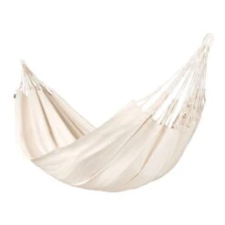 Diese Single HĂ€ngematte ‘Modesta’ aus beiger Bio-Baumwolle mit langen Fasern ist besonders reiĂfest und langlebig. Da sie eine praktische GröĂe von 300 x 140 cm hat, bietet sie einen hohen Komfort beim Entspannen. GenieĂen Sie das GefĂŒhl der Schwerelosigkeit! Dieses Modell ist bis 120 kg belastbar.