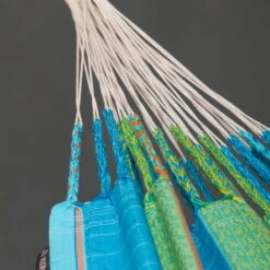 Erleben Sie zusammen mit der ganzen Familie einen besonderen Liegekomfort in der Kingsize-HĂ€ngematte Flora. Die breite HĂ€ngematte begeistert in den Farben des Meeres und kann mit einem Gewicht von maximal 200 kg belastet werden.