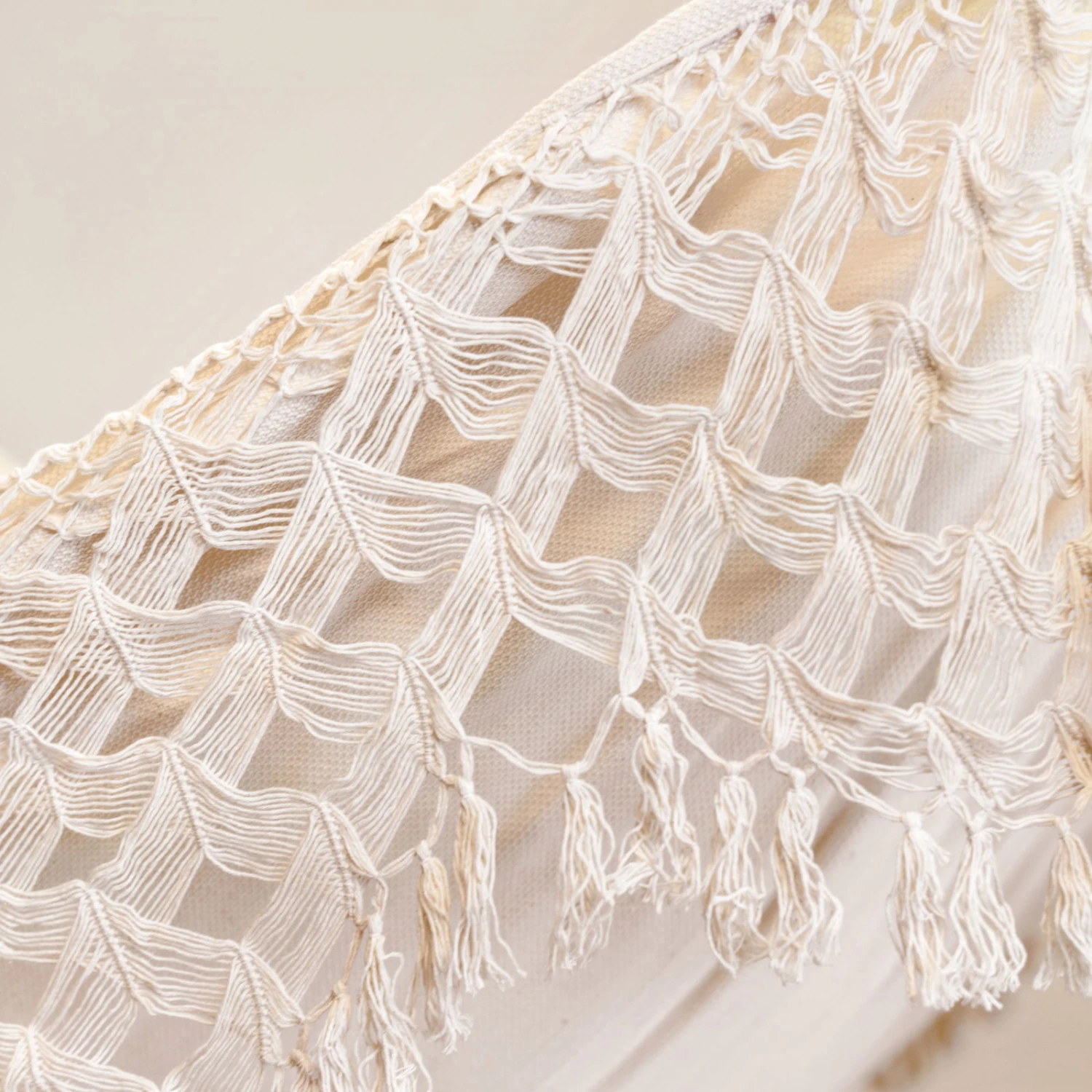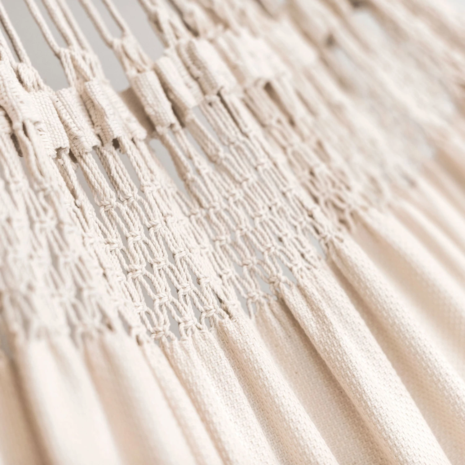 Wenn Sie gerne mit Ihrer Familie zusammen relaxen, werden Sie an der Kingsize HĂ€ngematte ‘Bossanova’ in Beige viel Freude haben. Sie ist 180 x 400 x 180 cm groĂ und bis zu 200 kg belastbar. Die Kombination aus Bio-Baumwolle und reiĂfesten Webkanten gibt der HĂ€ngematte eine hohe StabilitĂ€t. Steigen Sie ein und fangen Sie an zu trĂ€umen!