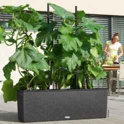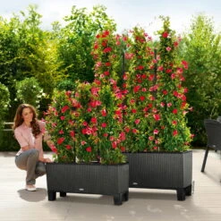 Zu diesem Pflanztrog erhalten Sie in unseren Gartencentern außerdem umfangreiches Zubehör wie das Trio Rankgitter, mit dem Ihre Pflanzen sicher in die Höhe klettern können. Für einen erhöhten Stand sind passende Sockel erhältlich.