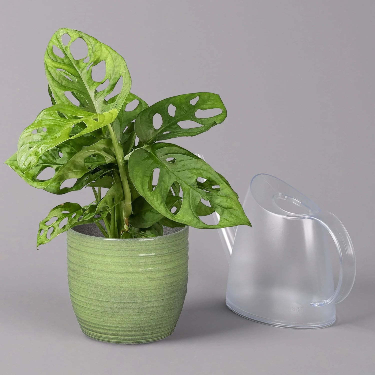 Das Schiefe Fensterblatt (Monstera adansonii) gilt als absolute Trendpflanze und bietet mit seiner außergewöhnlichen Optik die optimale Grundlage für echtes Dschungelfeeling in Ihrem Zuhause. Charakteristisch sind die elliptischen, zugespitzten Blätter, welche von mehreren Durchbrüchen durchzogen sind. Das verleiht der Pflanze ihr löchriges Aussehen und ihren Beinamen ‘Swiss Cheese Plant’ (zu Deutsch: ‘Schweizer Käse-Pflanze’). Die Blätter sind kräftig grün uns sitzen an langen Stielen. Die Monstera ist eine Kletter- und Rankpflanze und bildet Luftwurzeln aus, mit denen sie sich in der Natur an Felsen und Baumstämmen empor rankt. Bei der Zimmerkultur kann der Pflanze eine Rankhilfe in Form eines Moosstabs zur Verfügung gestellt werden. Ohne Rankhilfe wächst das Fensterblatt überhängend und kann auch in einer Blumenampel kultiviert werden. Kletternd kann die Pflanze Höhen von bis zu 3 Metern erreichen.