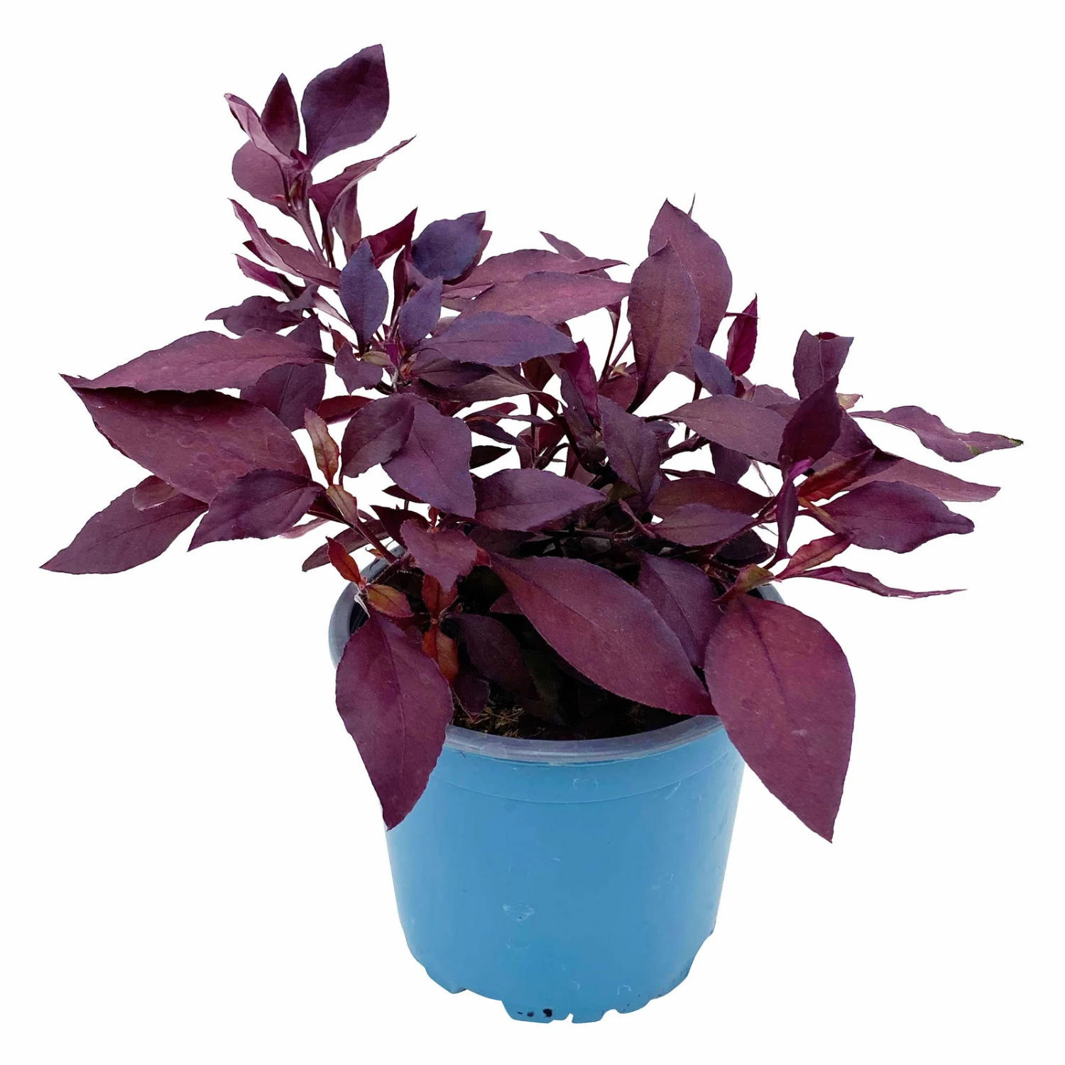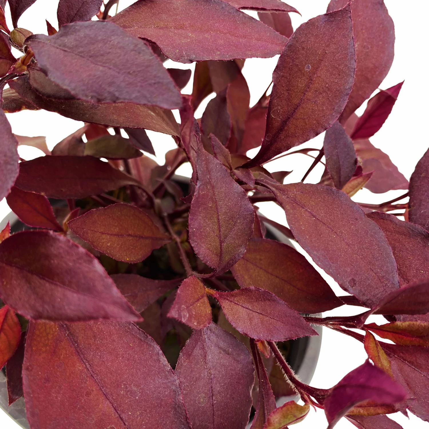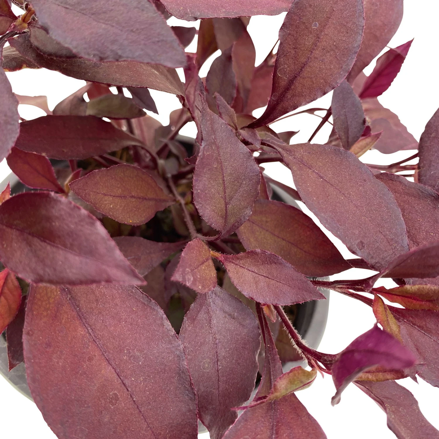 Der Papageienstrauch Alternanthera ‘Little Romance’ ist in Ihrem Garten oder Balkonkasten ein Hingucker der besonderen Art: Diese erstaunliche Pflanze begeistert nämlich mit zweifarbigen, dekorativen Blättern. Während die Blattoberseite sich in Dunkelviolett präsentiert, erscheint die Unterseite in kraftvollem Rubinrot. Sie können mit gleichem Erfolg den einjährigen, kleinbleibenden Papageienstrauch ‘Little Romance’ zum Bestücken Ihrer Blumenbeete und als Balkonpflanze einsetzen. An einem sonnigen und halbschattigen Standort fühlt sich die Alternanthera wohl. Eine weitere Voraussetzung für die erfolgreiche Kultur ist ein lockeres, nährstoffreiches und gleichmäßig feuchtes Substrat ohne Staunässe. Der Papageienstrauch ist eine hervorragende Blattschmuckpflanze und lässt sich mit Sommerblumen oder sommerblühenden Stauden zu farbenfrohen Kompositionen kombinieren. Aber auch in Kombination mit Besenheide, Chrysanthemen oder Silberblatt ist er eine schöner Blickfang.