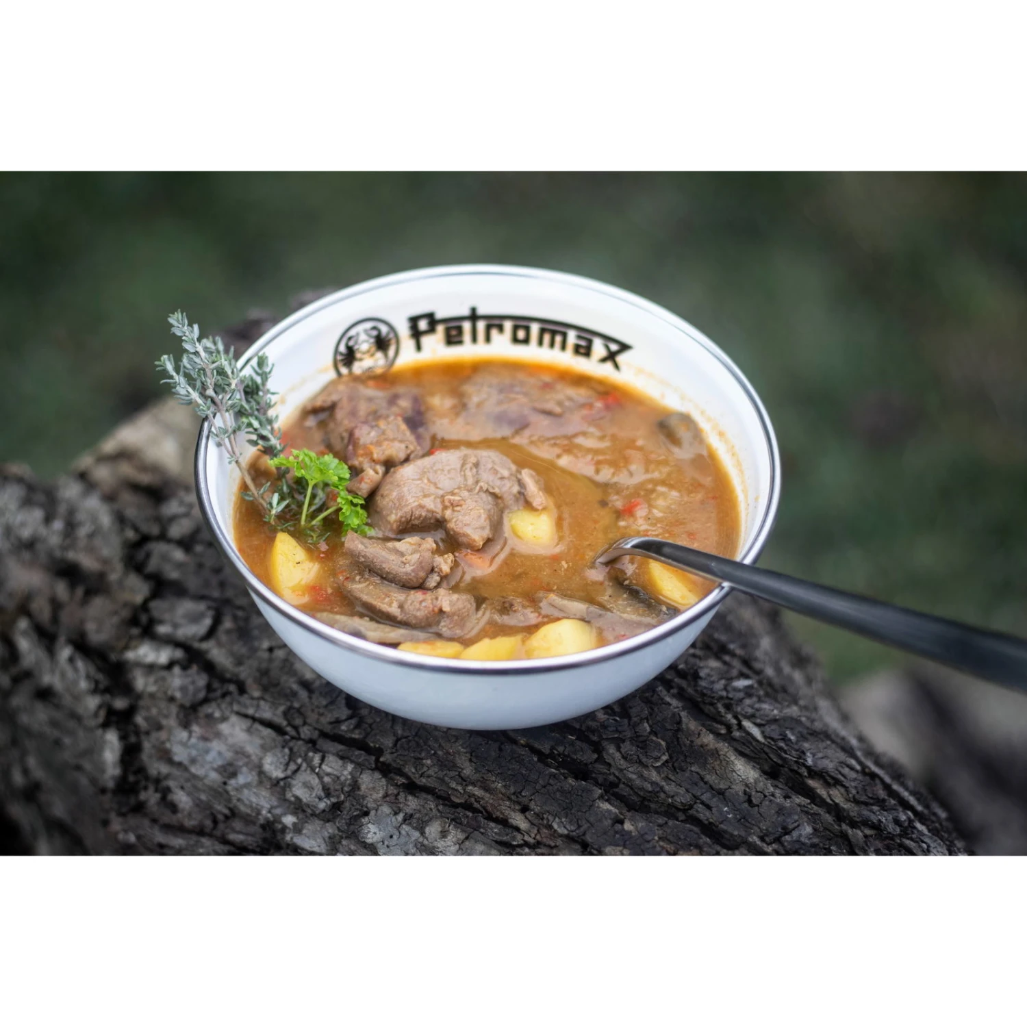 Die schwarzen Schalen von Petromax überzeugen mit geringem Eigengewicht, sind stoßsicher, langlebig und dank ihrer glatten, kratzfesten Oberfläche pflegeleicht. Dieses unkomplizierte Geschirr ist perfekt fürs Camping, für den Grillabend und auch in Ihrer Küche unersetzlich zum Portionieren, Servieren und Aufbewahren. Da die Schalen mit einem abgerundeten Rand schließen, können Sie sogar daraus trinken.