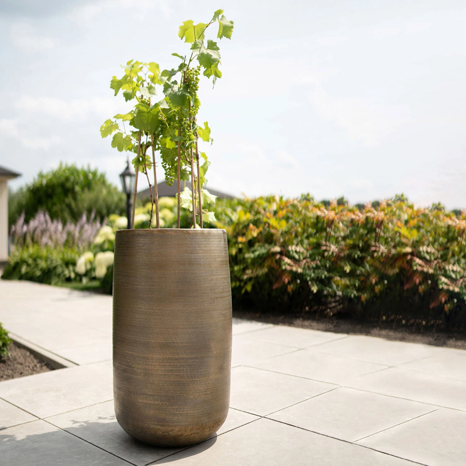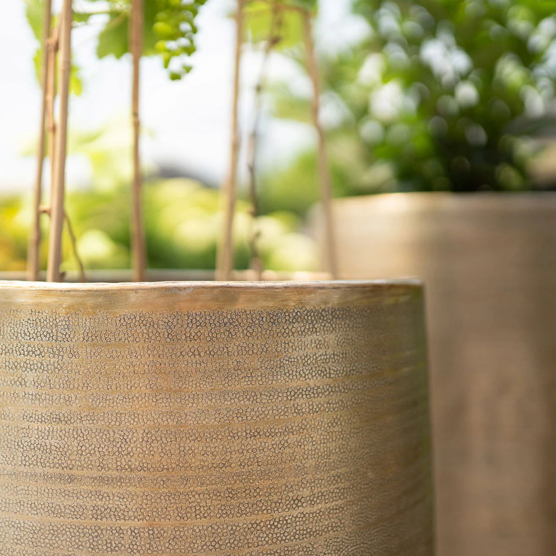 Das Pflanzgefäß ‘Rowen’ von Kölle präsentiert sich in elegant-schlanker Optik und wertet Ihre Begrünung in den Innenräumen oder outdoor mit einem glamourösen Akzent in edlem Gold auf. Dieser dekorative Pflanztopf fasst rund 60 Liter und wird aus hochwertig verarbeitetem Aluminium mit einer aufwendig per Hand aufgetragenen aparten Oberflächenstruktur hergestellt. Dadurch entsteht ein einzigartiges Gesamtbild, sodass jedes Pflanzgefäß ‘Rowen’ ein Unikat darstellt. Sie können den Blumentopf problemlos ganzjährig auf Ihrer Terrasse, Veranda oder auf dem Balkon stehen lassen, denn ‘Rowen’ ist rostfrei und auch sonst gegenüber Witterungseinflüssen unempfindlich. Mit diesem schmalen Pflanzgefäß harmonieren sowohl überhängend als auch aufrecht wachsende Zierpflanzen.