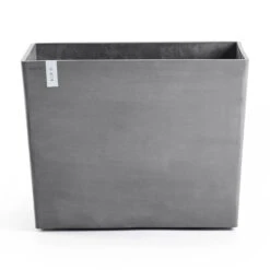 Dieser Pflanzkasten in angesagter Betonoptik besteht aus UV-resistentem, frost- und bruchsicherem Recyclingmaterial. Der graue Pflanzentrog ‘Paris’ von Ecopots überzeugt durch seine moderne, klare Linienführung und imposante Maße. Dabei verleihen die integrierten Rollen dem Pflanzgefäß ein Plus an Mobilität.