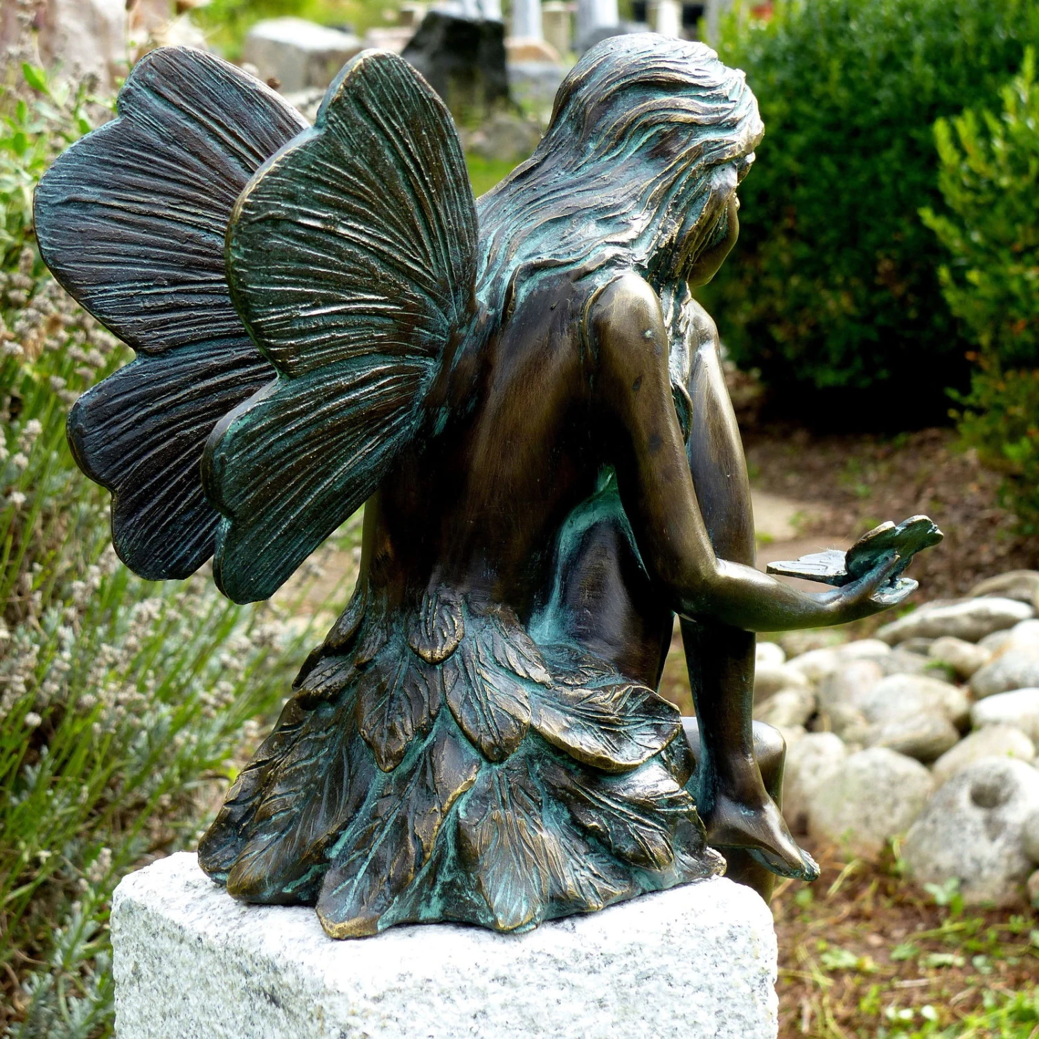 Die Bronze-Skulptur ‘Fee sitzend mit Schmetterling’ von Rottenecker ist ein charmanter Blickfang für Ihren Garten oder Ihre Terrasse. Diese Figur wurde in Handarbeit in Deutschland gefertigt und begeistert durch anmutiges, filigranes Design. Dabei ist der Bronzeguss pflegeleicht, frosthart und langlebig.