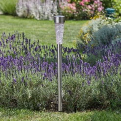 Diese Solarrundumleuchte aus Edelstahl mit Designer-Facettenglas für verbesserte Lichtverteilung spendet augen- und umweltfreundliches Licht. Lassen Sie Ihre Gartenwege oder den Eingangsbereich von Ihrem Zuhause ganz ohne Stromanschluss ausleuchten. Die Solarleuchten benötigen tagsüber einige Stunden Lichteinstrahlung.
