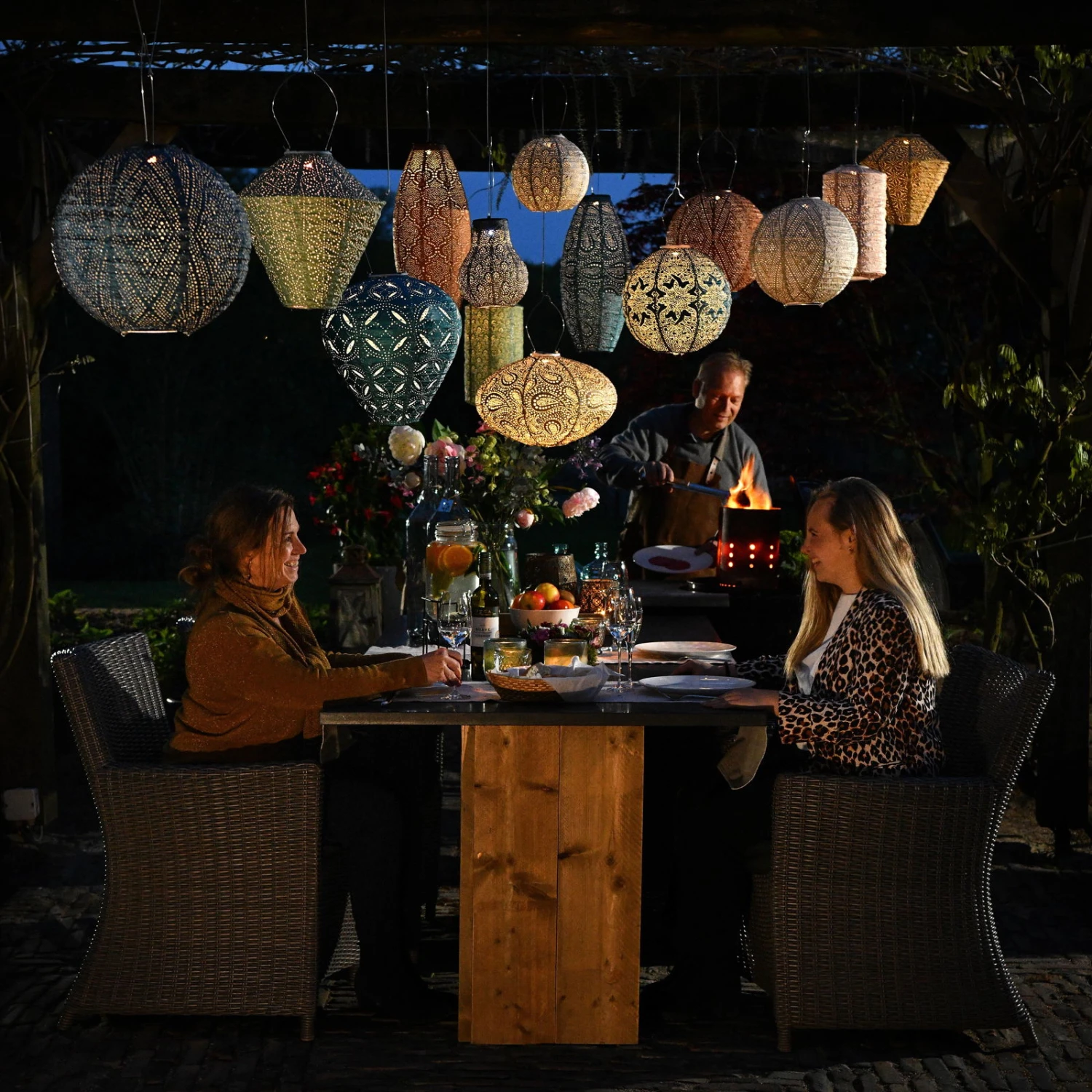 Diese dekorative Solarlaterne ‘Balloon XL’ weist ein modernes Design in der Farbe Helltaupe auf. Sie erzeugt interessante Lichtmuster und eine gemütliche Atmosphäre im Garten. Der zusammenfaltbare Solarlampion besteht aus dem widerstandsfähigen Material Tyvek R1443 PU, 43 g/qm und hat die Maße 35 x 50 cm.