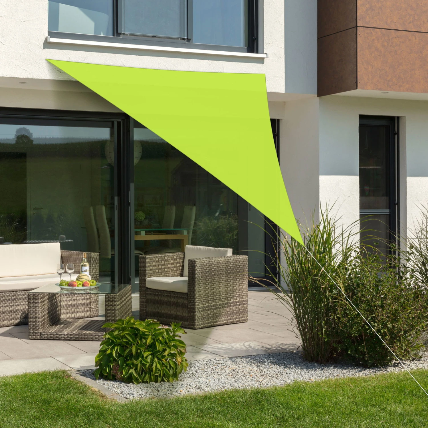 Das Sonnensegel ‘Lanzarote’ von Schneider Schirme präsentiert sich in sympathischer Farbe Apfelgrün und lässt auf Ihrem Balkon, Campingplatz oder Ihrer Terrasse eine kühle, schattige Oase entstehen. Sie erhalten das Sonnensegel zusammen mit einem rund 10 Meter langen Befestigungsseil. Für mehr Sicherheit und eine einfache Handhabung ist das Sonnensegel mit Edelstahlösen und einem doppelt vernähten Saum ausgestattet.