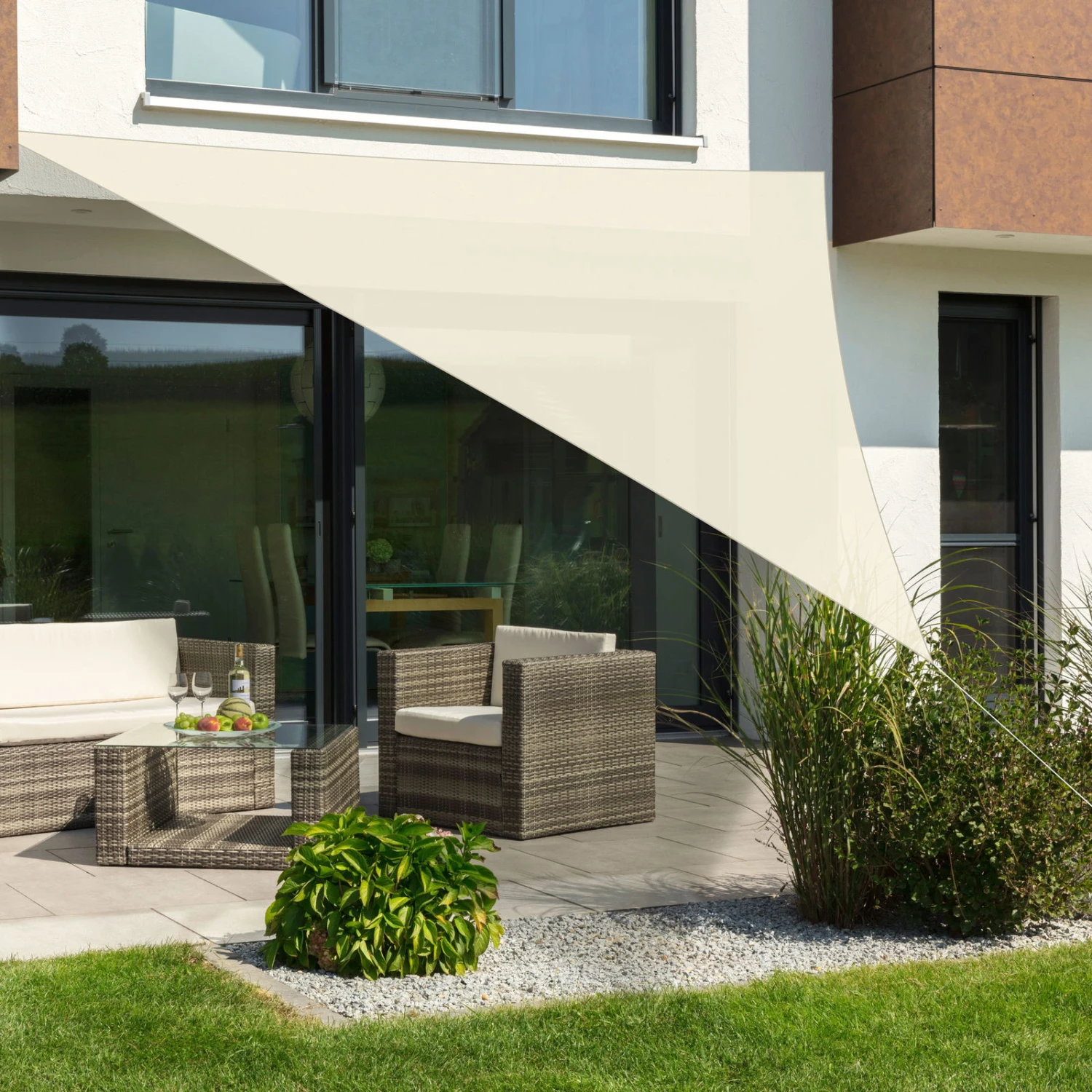 Das dreieckige Sonnensegel von Schneider Schirme ist Ihr eleganter und zugleich unkomplizierter Sonnenschutz für Terrasse oder Balkon. Dieses Segel besteht aus hochbelastbarem HDPE-Gewebe in der Farbe Natur, das sowohl reißfest als auch wasser- und schmutzabweisend ist. Sie erhalten das Sonnensegel inklusive Befestigungsseile und Edelstahl-Befestigungsringe.