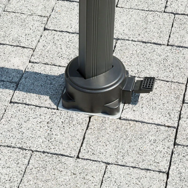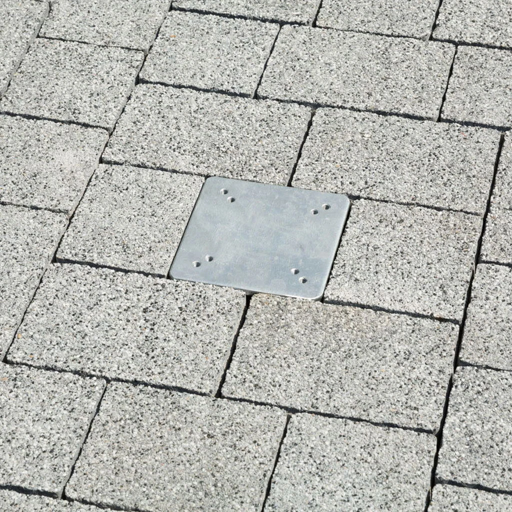 Diese Universalbodenplatte von Schneider ist aus robustem, feuerverzinktem Stahl gefertigt und zum Einbetonieren gedacht. Die Bodenplatte ist mit den Sonnenschirmen aus den Produktreihen Monaco, Barbados, Bermuda, Rhodos Junior, Rhodos Grande, Rhodos Twist, Rhodos, Rhodos Blacklight, Rhodos Rondo, Samos, Lotus, Venus kompatibel.